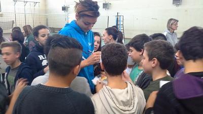 Bella giornata di sport e solidarietà delle nostre ragazze. Le nostre atlete, infatti, hanno firmato autografi ai ragazzi della Scuola Media A.Spinelli dopo la loro visita per sostenere un progetto Erasmus per gli studenti mettendo a disposizione gadgets e materiale sportivo della squadra che sono serviti a raccogliere un fondo. Grande entusiasmo da parte di tutti, bellissima mattinata di volley e sorrisi: avanti cosi!